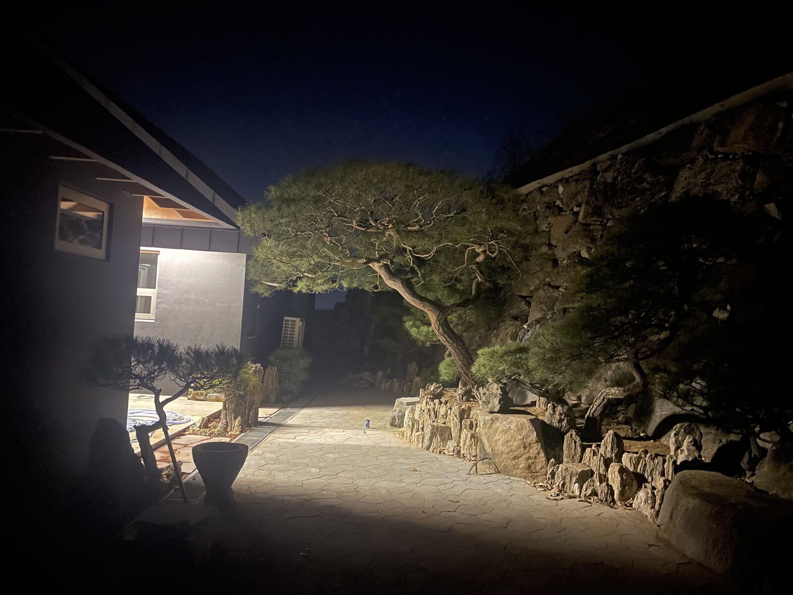 수령 50년~100년 이상의 오래된 소나무. 굴곡이 살아있는 줄기와 분재형 가지가 정원의 격을 단숨에 올립니다. 25톤 크레인으로 운반·식재합니다.