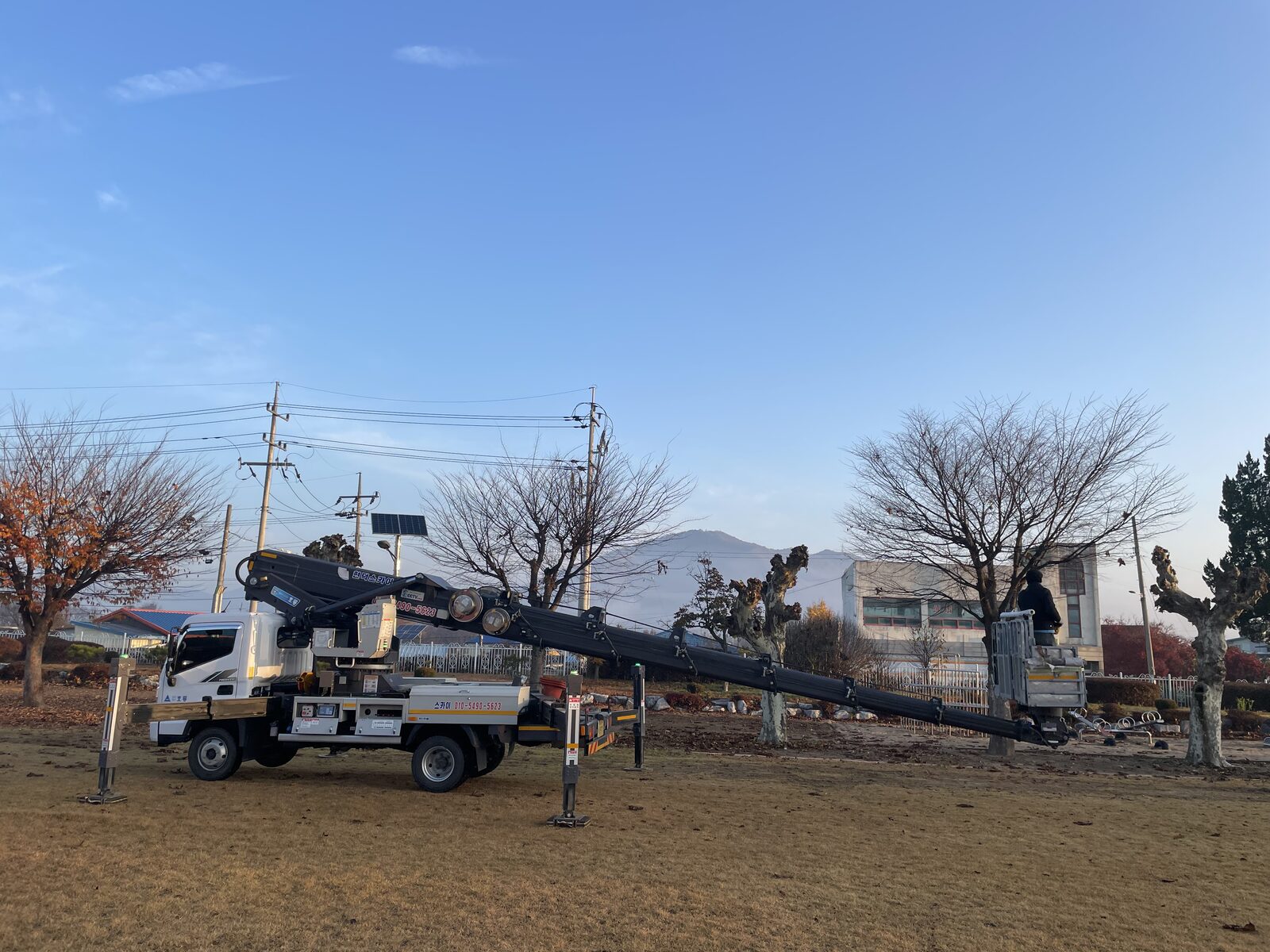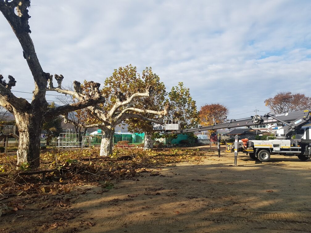 - 고소작업차 동원 가지치기 — 그루당 30만~150만원 (수목 크기에 따라)