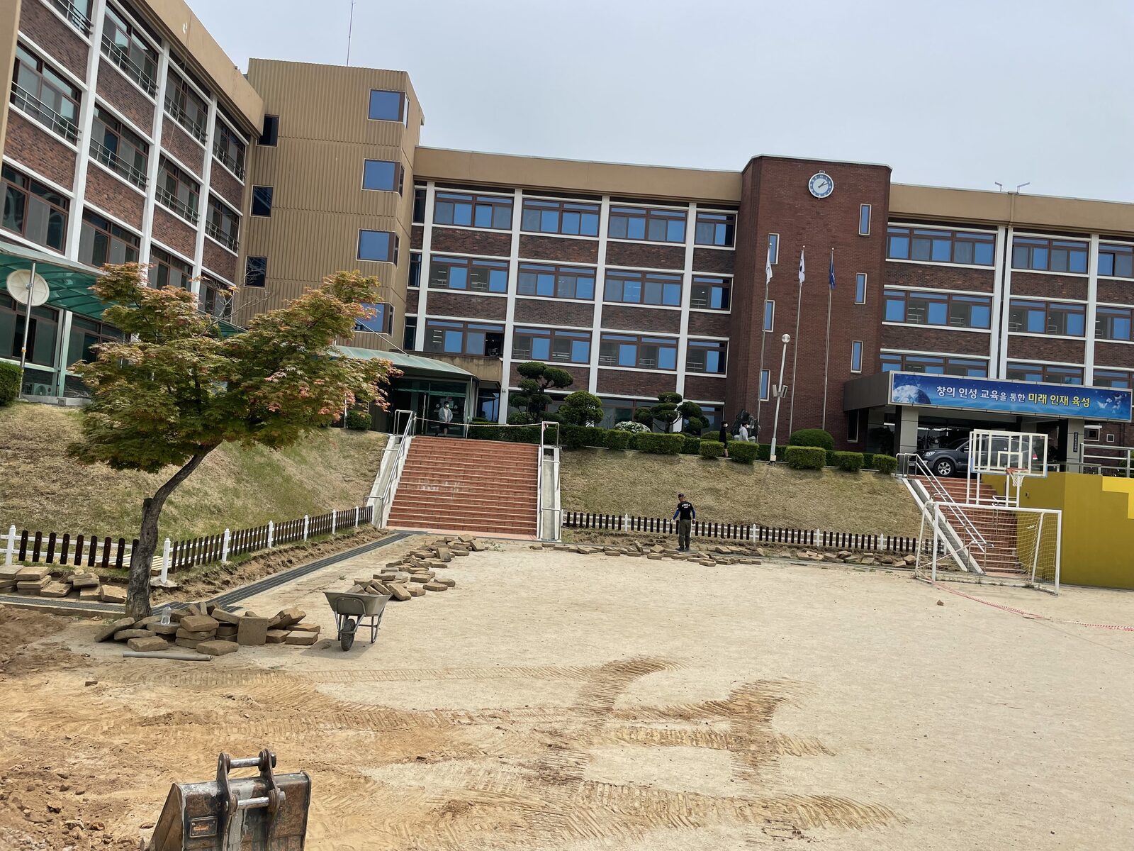 운동장 정비, 진입로 포장, 휴게 공간 조성, 화단·식재, 노거수 관리, 가지치기 등. 학생들의 안전과 학교의 미관을 동시에 고려한 시공.